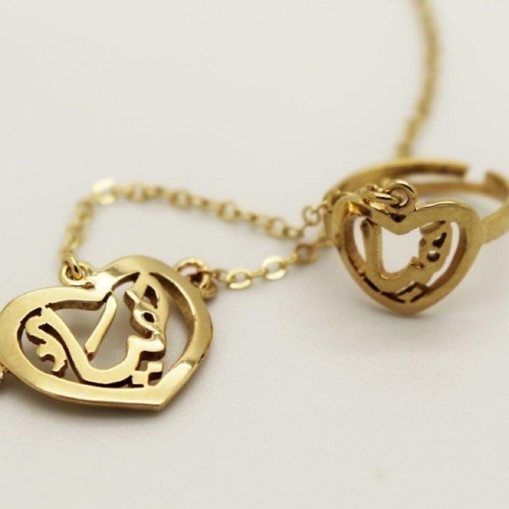 أسورة مع خاتم بالاسم وبطلاء من الذهب