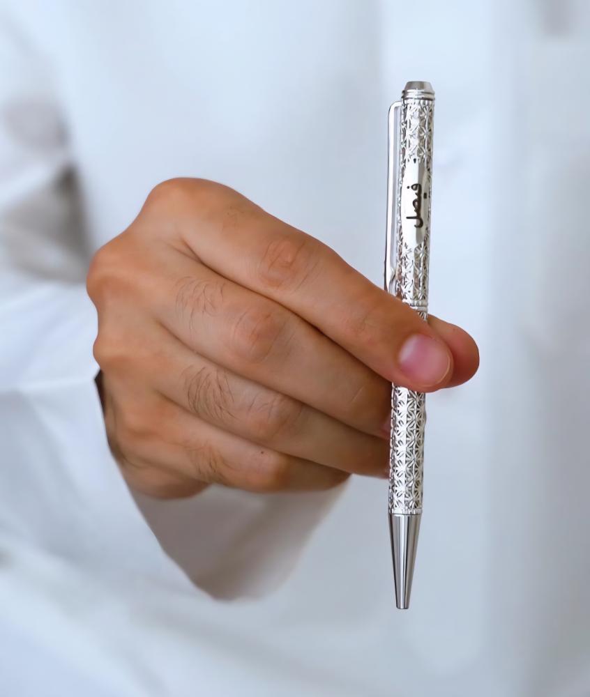 تميّز بأسلوبك الخاص مع قلم راقٍ يحمل اسمك بحفر دقيق ولمسات فاخرة. هذا القلم الأنيق ليس مجرد أداة للكتابة، بل قطعة تعكس شخصيتك وتضيف لمسة من التميز إلى مكتبك أو هداياك الخاصة.